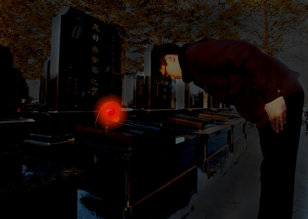 傍晚时分,郑茂胜正把灯笼放在墓前,每放一盏灯,他都要代表家属三鞠躬,表达敬意。