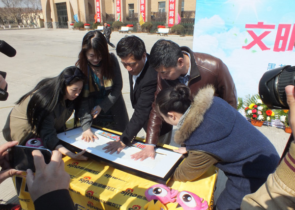 乾坤园与新浪黑龙江共同举办的“文明祭扫、保护蓝天”大型公益活动启动仪式,今天上午在乾坤园隆重举行。