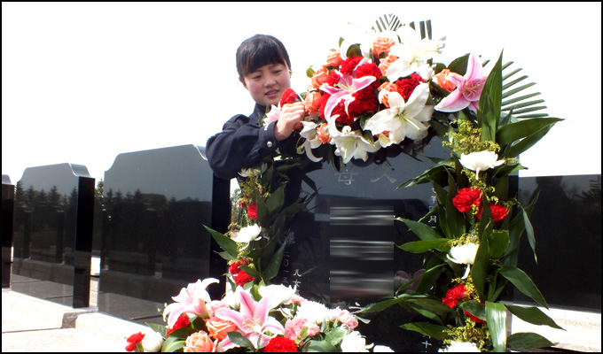 墓室装饰鲜花 前几日,为给老人办理“乔迁之喜”,百勋区用户丁先生预定了为墓室装饰鲜花的服务。今晨,鲜花服务部的工作人员早早的带着各类鲜花来到墓前,为装饰墓位做准备。经过精心的处理与设计,乾坤园很快为关先生一家呈现了一座温馨美丽的“小家”,也为他们提供了一场感动难忘的葬礼。