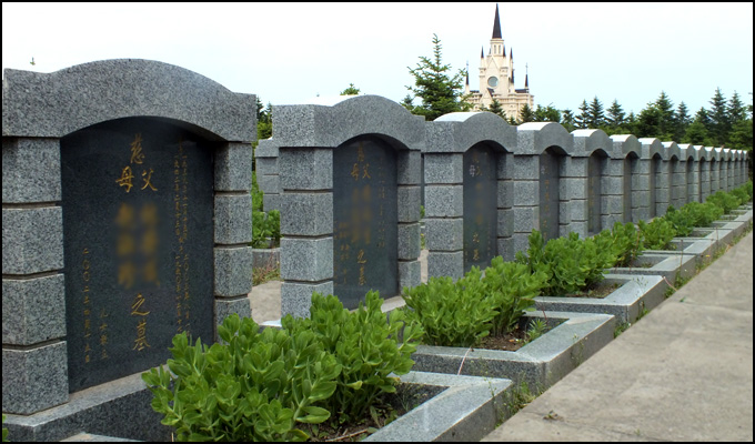 生命用另一种方式存在 墓区中,有一类墓型与大众墓型不同,它们以绝对亲近自然的方式存在。简单大方的墓碑、用土壤填埋的方法代替墓盖,经过园艺师精心的修饰照料,”景天“在土壤上发芽成长。每每有人在此祭扫,总会感慨:亲人并没有走,他只是换另一种方式存在了……