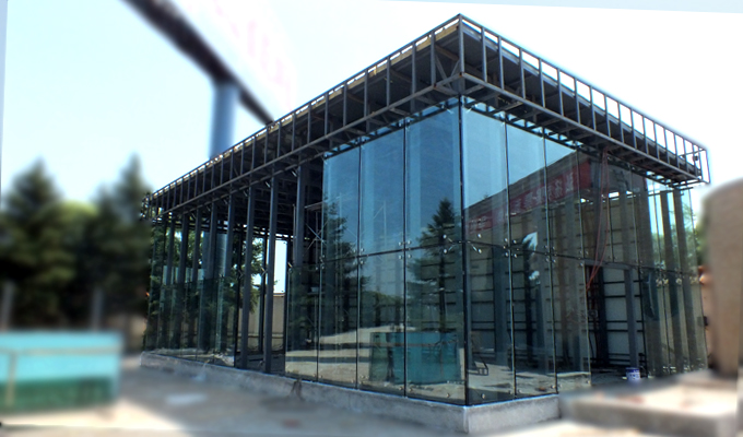 礼仪厅修建最新进程 继基础框架完工之后,顶着三十多度的高温,工人们正在紧张的为礼仪厅安装玻璃。通体落地玻璃配上钢体骨架,远处望去,礼仪厅的现代化、智能化风格已显露出来。