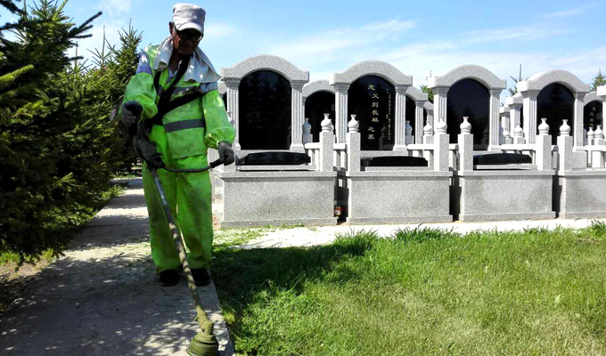 雨季的青草总是以惊人的速度生长,此时,接近34°的气温下,园林工人仍然精心的修剪着草坪。