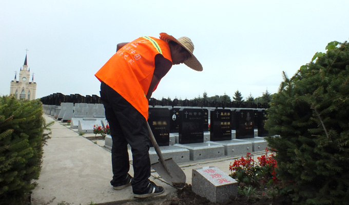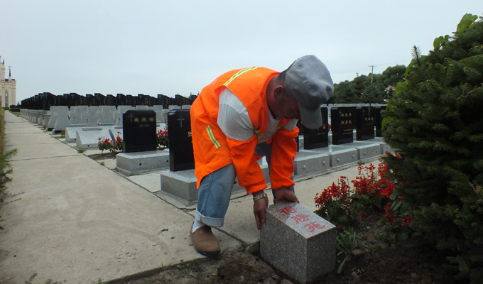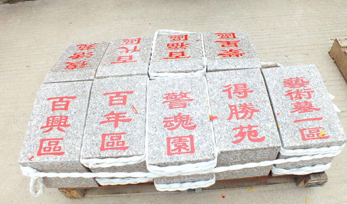 安装界碑 走进东墓区,一块块崭新的小界碑被整齐的摆放在墓区旁边,工人师傅们正在忙碌的安装着,很快,一块块精致的小界碑就被安装在了各个墓区统一的地方,为用户指引位置。