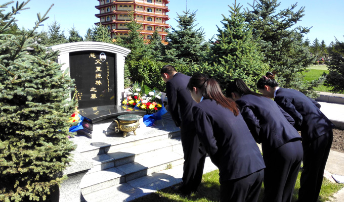 向老兵致敬 他们是民族的英雄,在战火纷争的年代,他们抛头颅,洒热血,保家卫国。老兵,谢谢!在这个阳光明媚的日子,接待部门员工集体向安眠在乾坤园的老兵致敬。