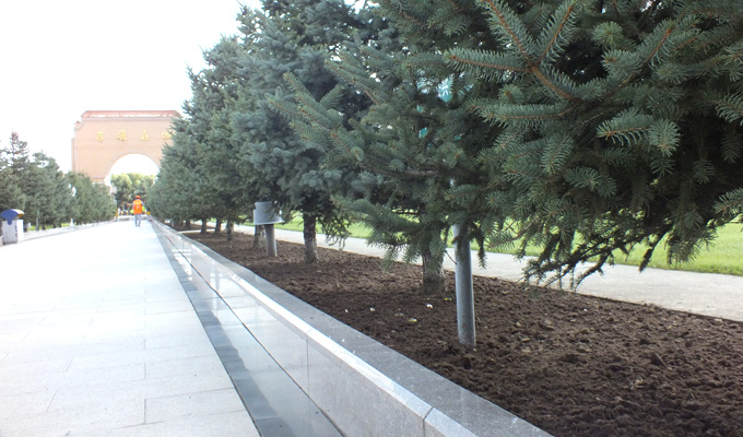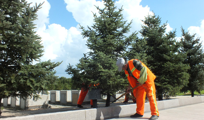 为绿化带除草 晴朗的午后,园林工人们又开始了忙碌的工作——清除主瞻仰大道两侧绿化带的杂草,翻新过的绿化带给人一种舒适悦目的感觉。