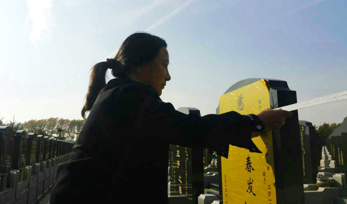 碑文仔细核对后,将胶纸粘贴到墓碑上,看似简单的工作,却要求工作人员精确到毫米测量,才能保证碑文的完美协调。