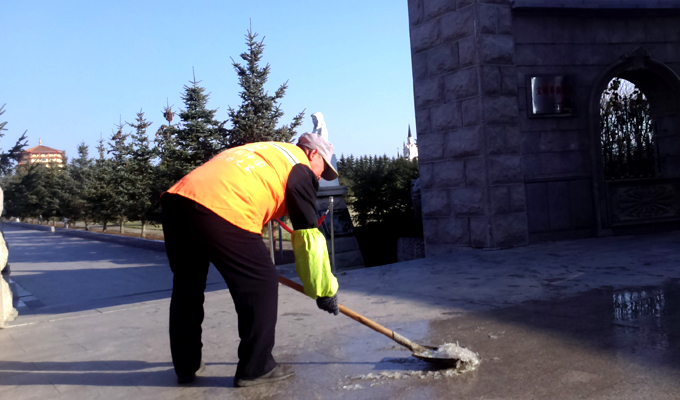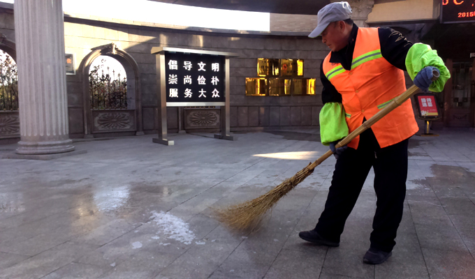 冬季来临,及时清冰 哈尔滨的冬季总是来得很快。昨夜的绵绵秋雨,今早却变成了附着在路面上的薄冰。为了保证用户的祭扫安全,工人第一时间对墓区的薄冰进行了处理。 图/寇彬彬 文/寇彬彬