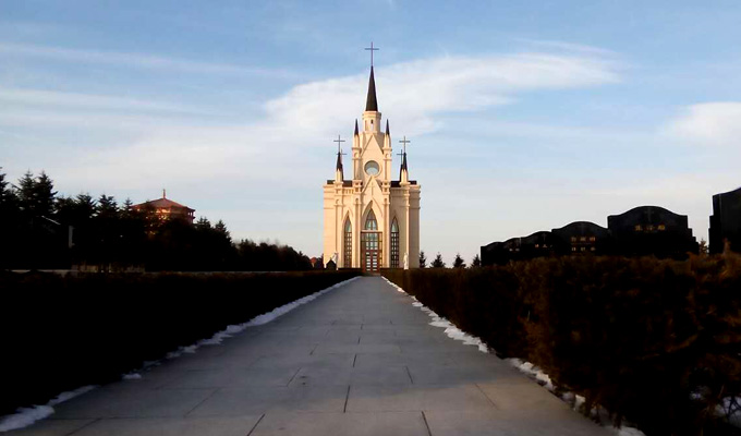 墓区中的积雪已全部清理干净。夕阳下,宁静的墓区显得格外优美……