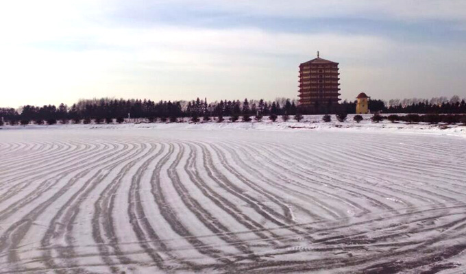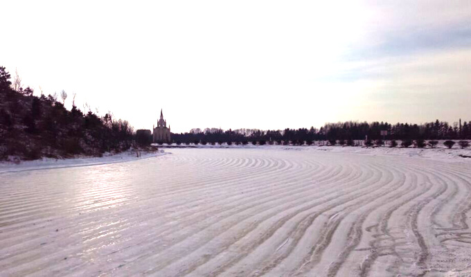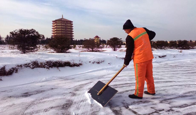 让湖内的鱼能够自由呼吸,下午,园林工人对冰面的积雪进行了清理。
