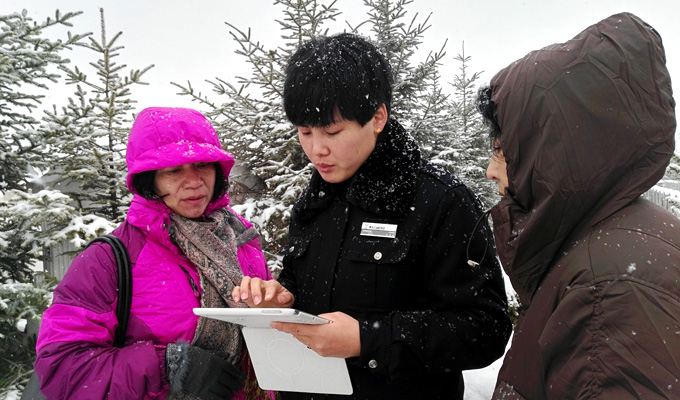 大雪已经把乾坤园变成了雪的世界。尽管漫天的雪花纷飞,工作人员仍然热情、耐心的为用户服务着……