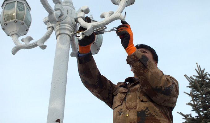 下午,物业部门员工对墓区内各路灯进行统一擦拭、检修,为元旦做准备。