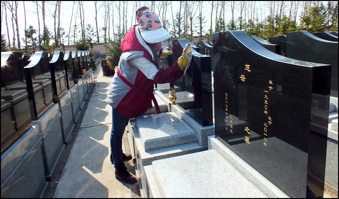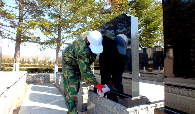 "作战"沙尘暴,还墓区一片崭新! 昨天的一场大风沙尘弄脏了墓碑,为在清明节给用户最优质的祭扫环境,我们全力以赴,还墓区一片崭新!