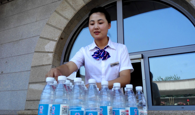 高温天气,乾坤园工作人员在园区内设点为用户免费发水,为用户送上一丝清凉。