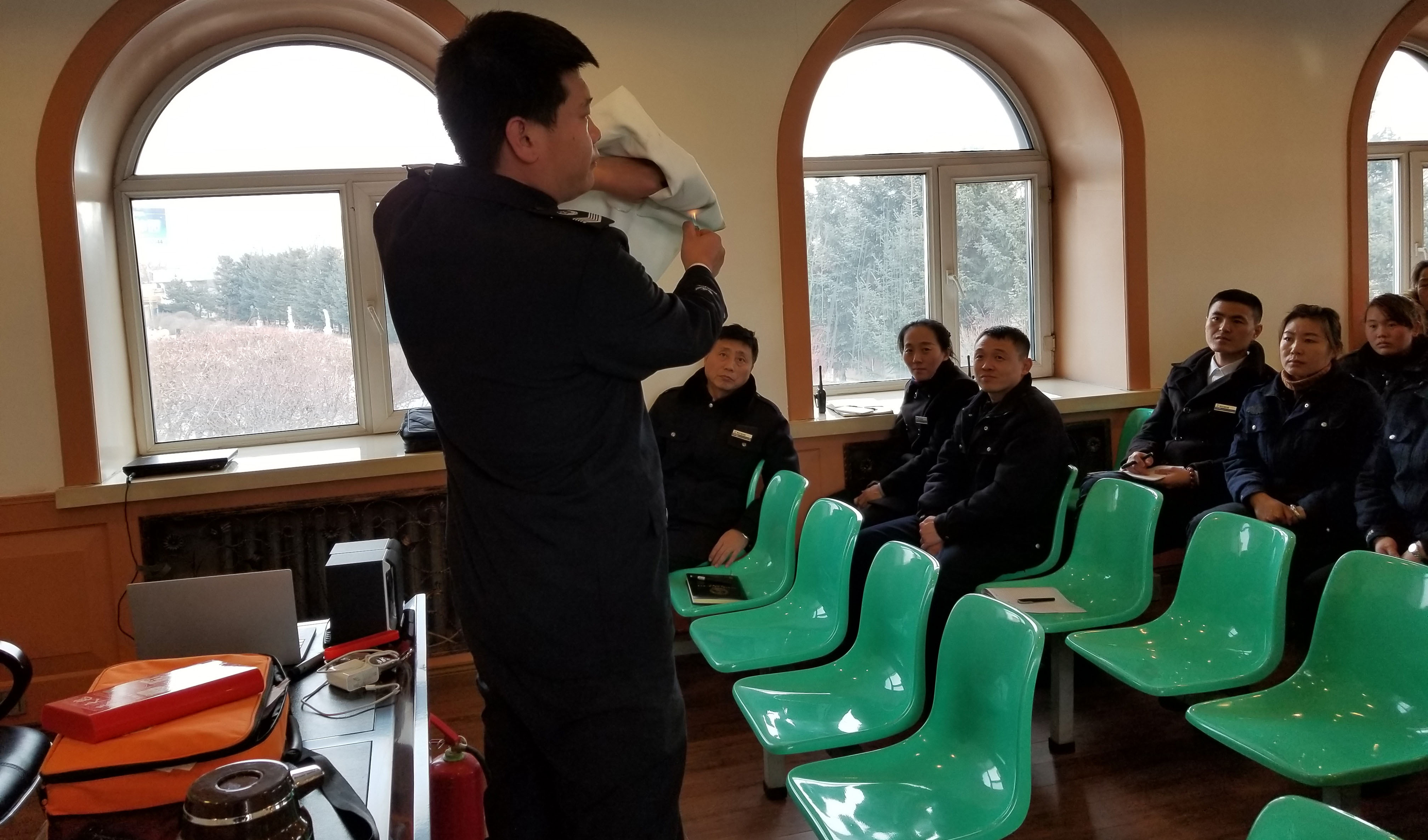 乾坤园组织员工“零距离”感受、学习消防安全知识,防患于未然。活动现场,消防官兵详细地讲解了灭火器的使用方法,为员工们讲解了如何预防火灾,火灾发生后,如何进行有效处置、如何逃生等知识,增强了乾坤园员工们的消防安全意识。