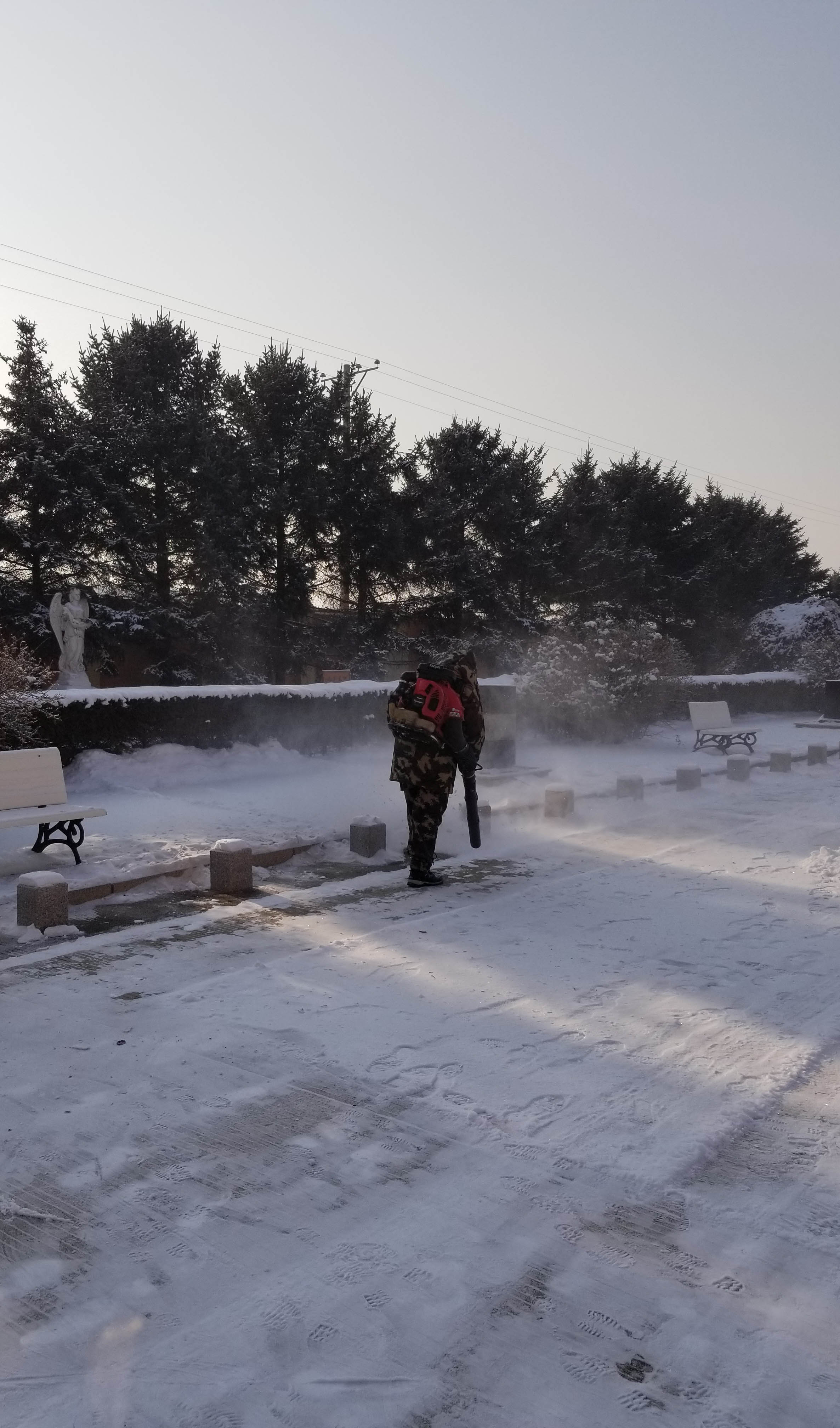 近日连降大雪,乾坤园全体员工以雪为令,第一时间奋战在清雪第一线。新型设备与大型机械齐上,保障用户的正常祭扫与业务办理!