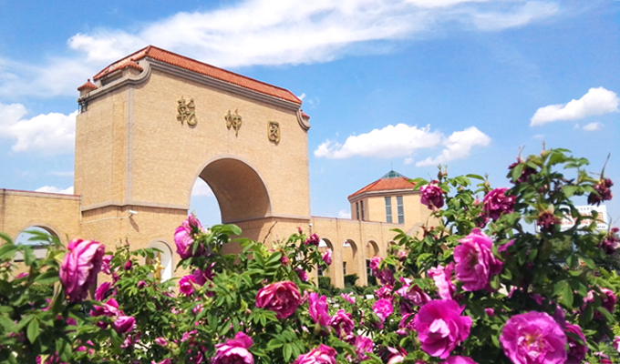 夏日里,乾坤园步行广场上的玫