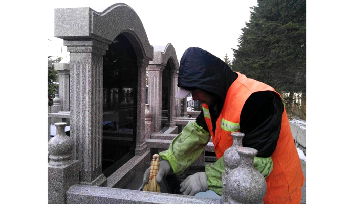 午后,墓位工人们按照计划打扫