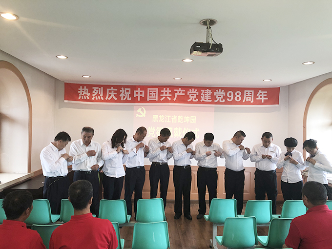 为庆祝中国共产党成立98周年,回顾党的奋斗历史,重沐红色精神,激励党员牢记誓言,增强党员的责任感和使命感。6月29日乾坤园进行了党徽佩戴仪式活动,活动中乾坤园全体党员佩戴党徽,并怀着激动的心情高声齐唱《没有共产党就没有新中国》,最后乾坤园全体党员集体参观了四野指挥部。通过此次活动,给我们全体职工思想“充了电”,进一步明确了自身肩负的时代责任,在今后的工作中:“不忘初心,牢记使命”。